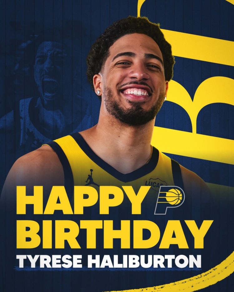 直播吧2月28日訊 步行者官方社媒曬照,祝福當家球星哈利伯頓26歲生日快樂。