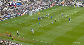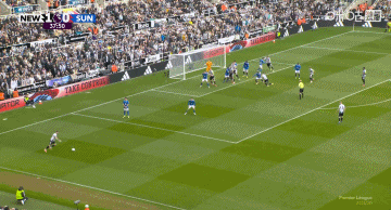 第38分鐘,紐卡左路任意球機(jī)會,特里皮爾主罰直接吊向球門,稍稍高出橫梁↓