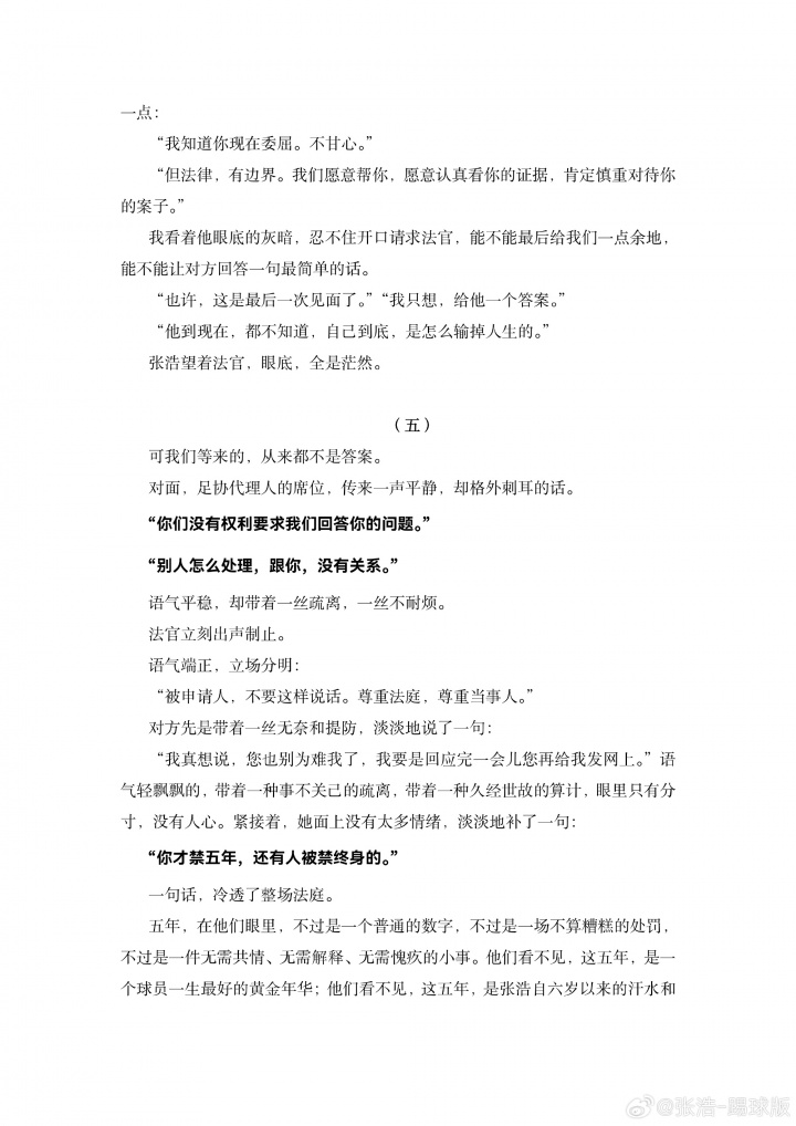 直播吧03月22日訊 被中國足協(xié)禁足五年的前黑龍江冰城球員張浩更新社媒,轉(zhuǎn)發(fā)了一篇長文,并配文:沒有人愿意一次次揭開傷疤,但是我們必須面對。