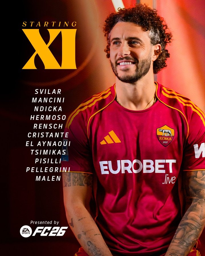羅馬首發(fā):斯維拉爾;詹盧卡·曼奇尼、恩迪卡、埃爾莫索、倫施;克里斯坦特、艾納維、齊米卡斯、皮西利、佩萊格里尼;馬倫。