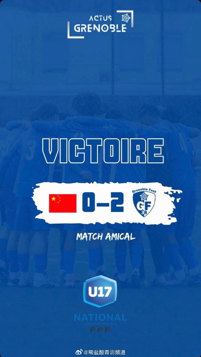 博主:U16國足熱身賽0-2不敵格勒諾布爾38 U17隊(duì)