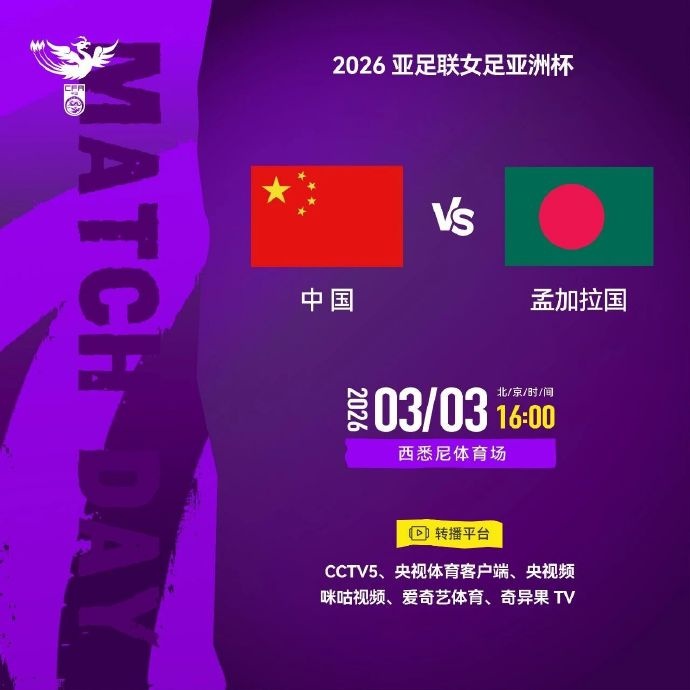 女足亞洲杯小組賽首輪 中國VS孟加拉國 3月3日16:00 西悉尼體育場