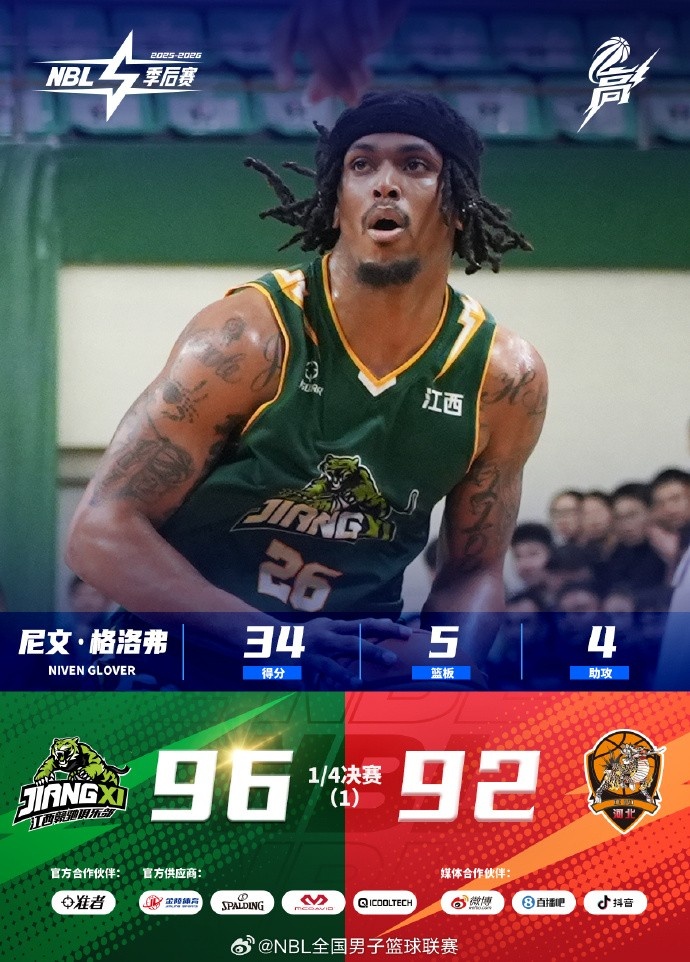 本場季后賽 1/4 決賽首戰(zhàn),雙方開局膠著,江西鯨裕清酒次節(jié)進攻熄火陷入低迷,上半場落于被動;易邊再戰(zhàn), 26 號尼文-格洛弗徹底爆發(fā),單節(jié)狂砍主導進攻,帶領球隊掀起反撲狂瀾,一舉扭轉場上局勢;末節(jié)決戰(zhàn),江西鯨裕清酒全隊穩(wěn)扎穩(wěn)打,牢牢把控勝局,最終以96-92主場取勝。