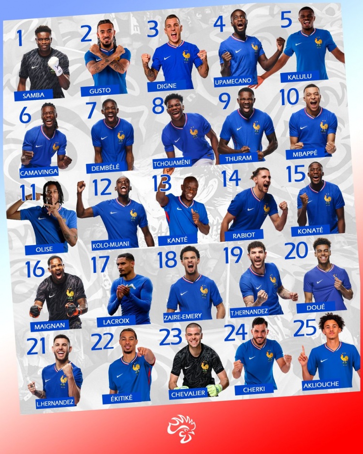 法國隊(duì)本期名單球員號碼