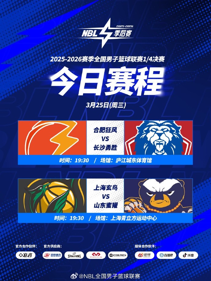 NBL季后賽第2個比賽日 :合肥狂風(fēng)VS長沙永勝 上海玄鳥VS山東蜜獾