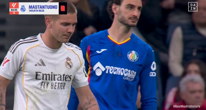 直播吧03月03日訊 皇馬0-1不敵赫塔費(fèi)遭遇兩連敗,馬斯坦托諾補(bǔ)時(shí)階段染紅。裁判報(bào)告顯示,馬斯坦托諾對(duì)他說(shuō):“真丟人,真xx的丟人(vaya vergüenza, vaya puta vergüenza)”。