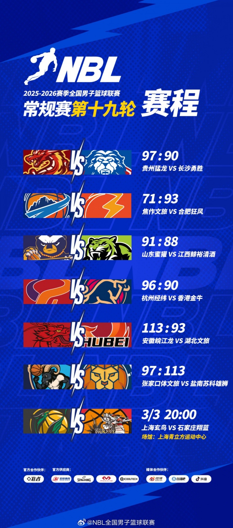 NBL常規(guī)賽第19輪第二比賽日!安徽皖江龍大勝湖北文旅 升至第九名