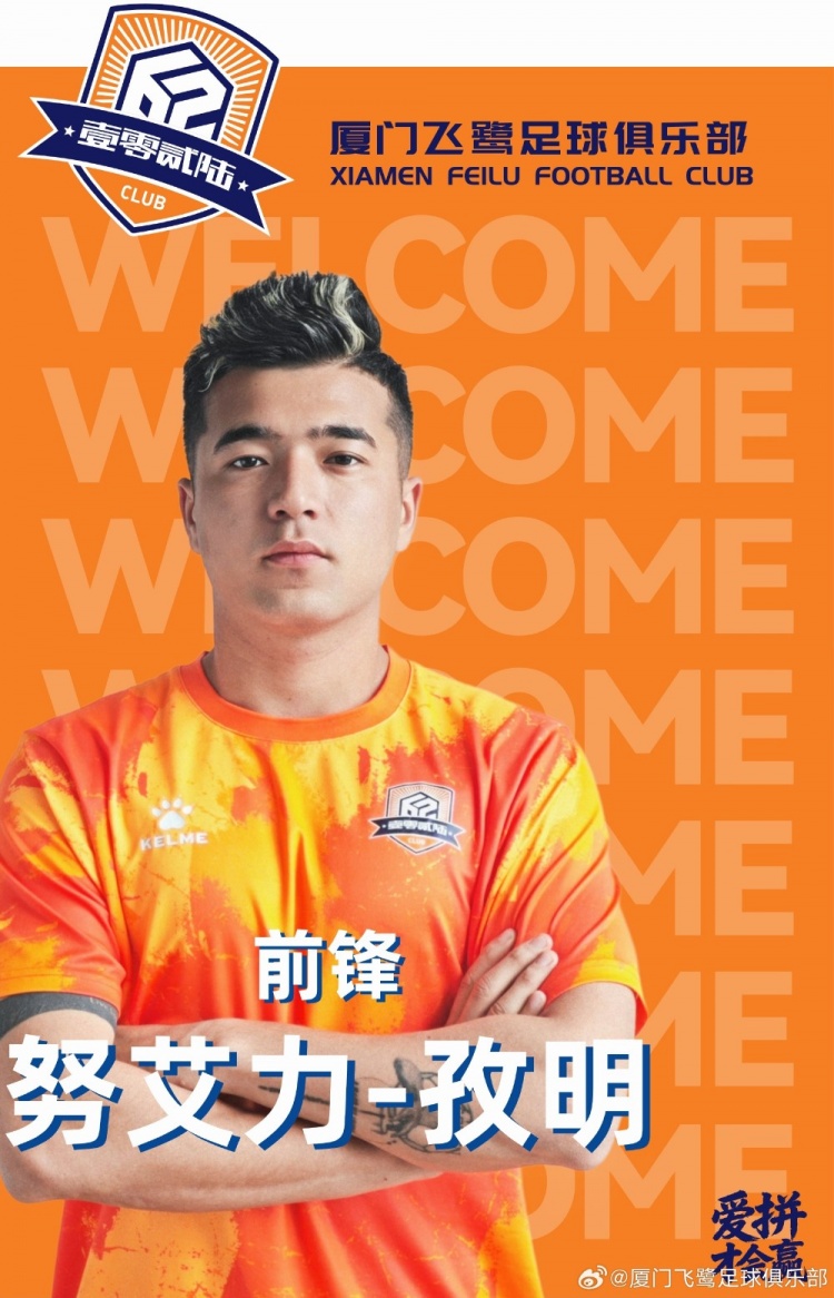 歡迎努艾力·孜明加盟廈門飛鷺足球俱樂部,期待他全力以赴,為球隊(duì)貢獻(xiàn)精彩表現(xiàn)與更多勝利。