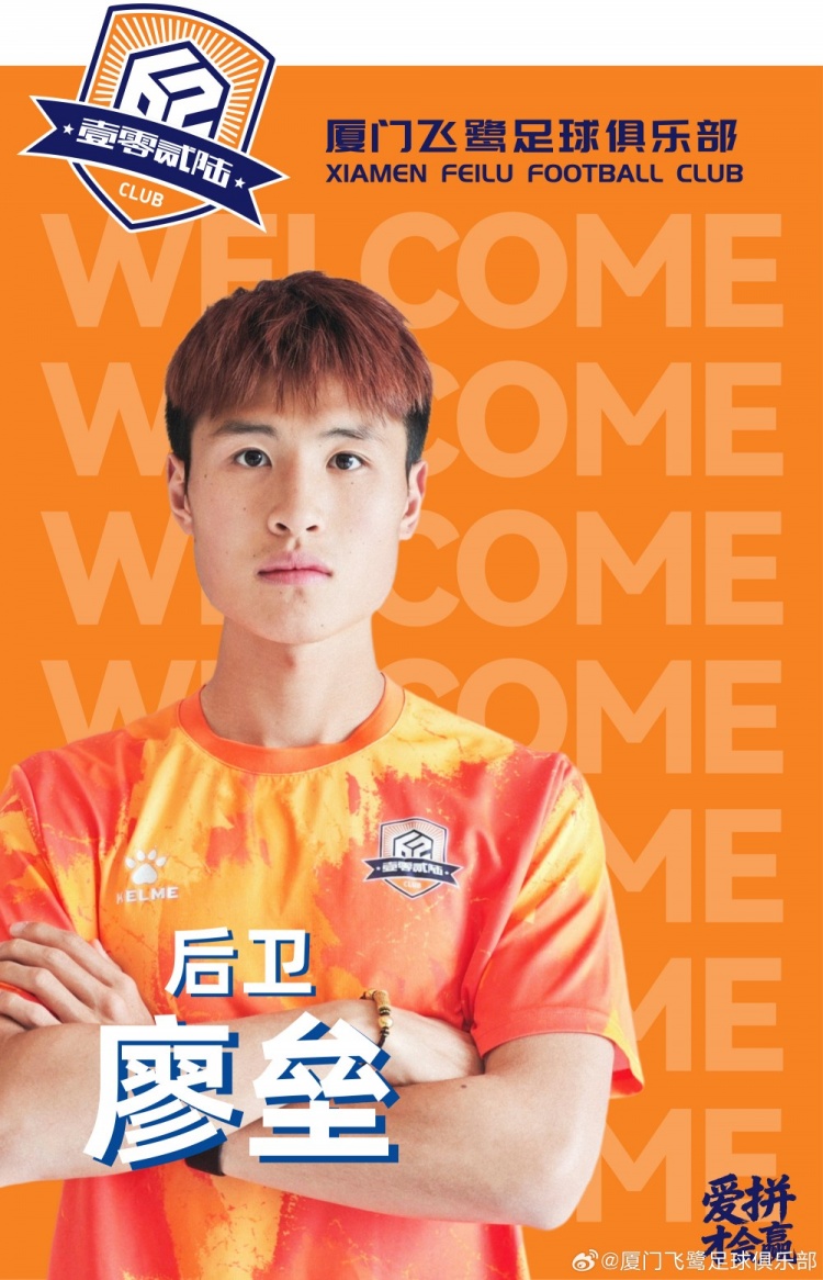 歡迎廖壘加盟廈門飛鷺足球俱樂部,期待他鎮(zhèn)守防線、全力以赴,助力球隊(duì)穩(wěn)步前行。
