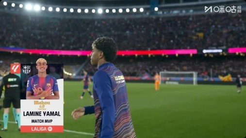直播吧3月1日訊 西甲第26輪,巴薩主場4-1戰(zhàn)勝比利亞雷亞爾,賽后亞馬爾當(dāng)選全場最佳球員。