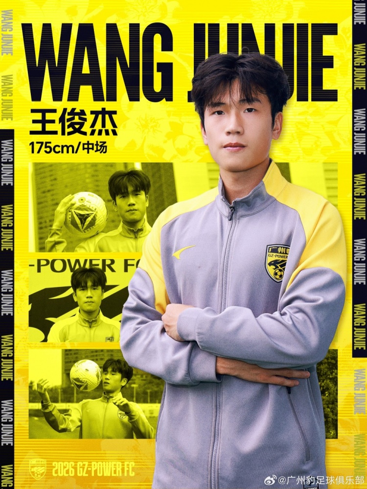 官方:浙江隊球員王俊杰租借加盟廣東廣州豹,生于2005年司職中場