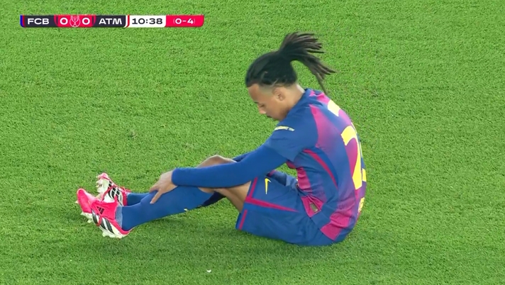 直播吧03月04日訊 國(guó)王杯半決賽次回合,巴薩對(duì)陣馬競(jìng)。11分鐘,孔德無對(duì)抗下自己主動(dòng)將球踢出界外,隨后坐在地上,被巴爾德?lián)Q下。