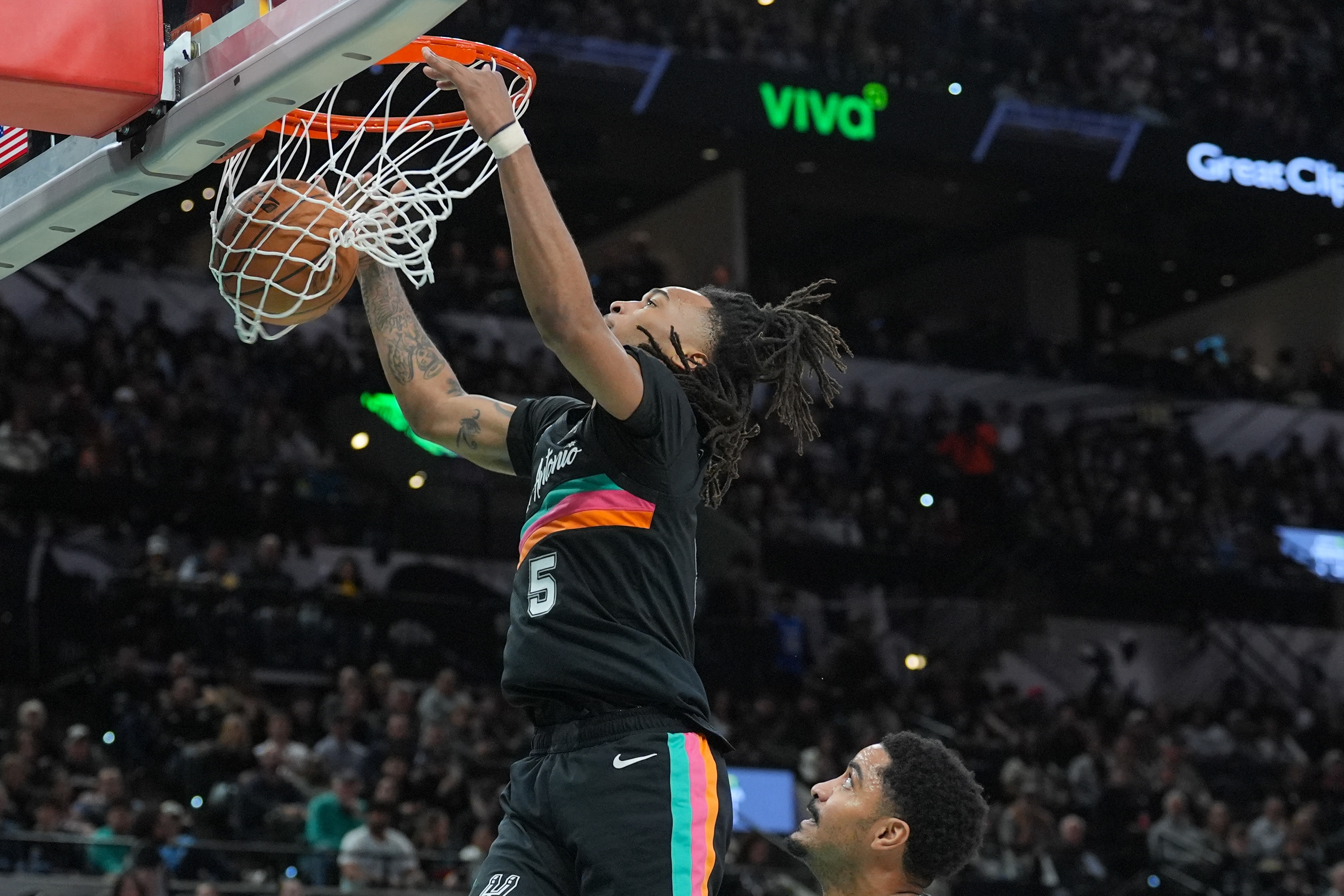 勢(shì)大力沉!卡斯?fàn)柾盗锏拙€(xiàn)接球雙手拽筐暴扣得分