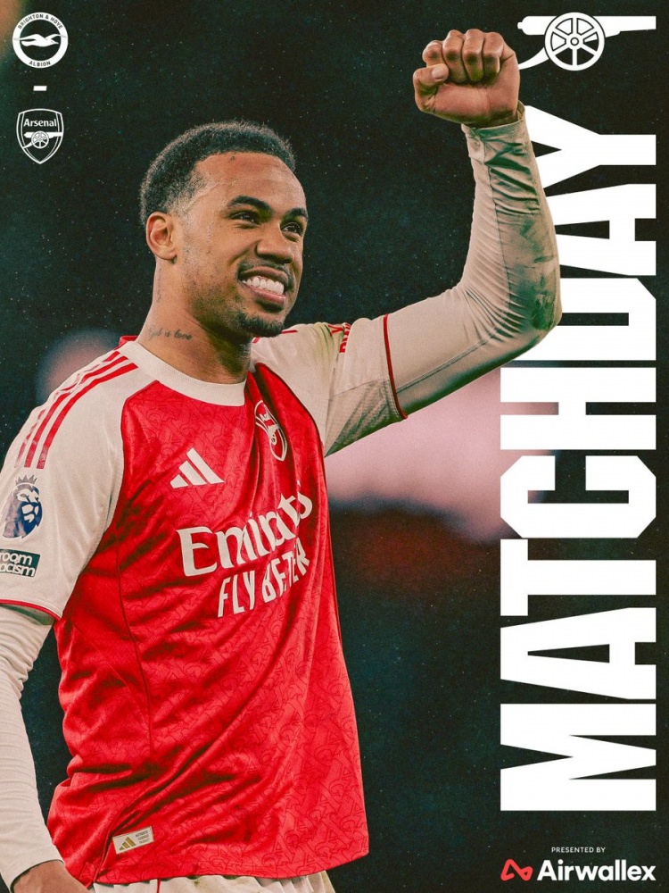 劍指三分!阿森納發(fā)布客戰(zhàn)布萊頓海報(bào),加布里埃爾單人出鏡