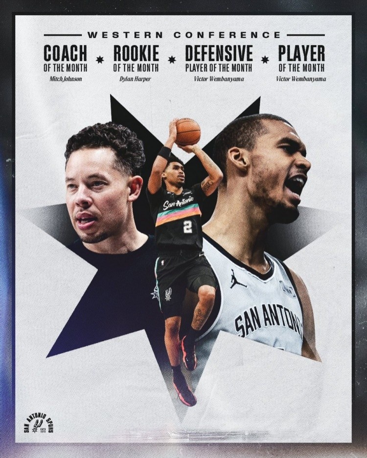 全是你們的!馬刺包攬西部月最佳球員/教練/新秀 NBA歷史首隊