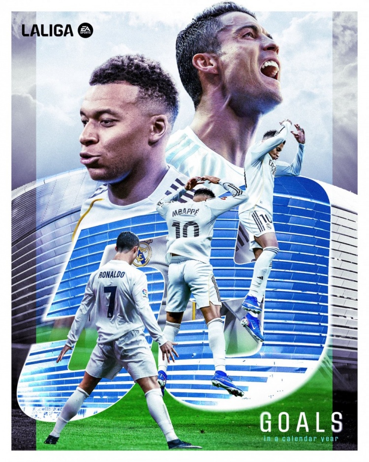 三天后,在歐冠對陣曼城的比賽中,姆巴佩沒有獲得出場機會。但在2025年皇馬最后三場比賽中,他全部打滿90分鐘,最終追平了C羅保持的俱樂部自然年進(jìn)球紀(jì)錄——59個。