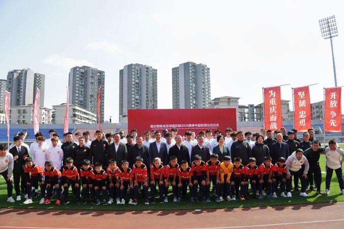重慶市體育局、銅梁區(qū)委區(qū)政府相關(guān)領(lǐng)導,俱樂部管理層、教練員、全體一線隊球員,各贊助商代表及各界球迷代表齊聚一堂,共踐初心、共赴新程,為重慶銅梁龍征戰(zhàn)2026賽季中超聯(lián)賽壯行。