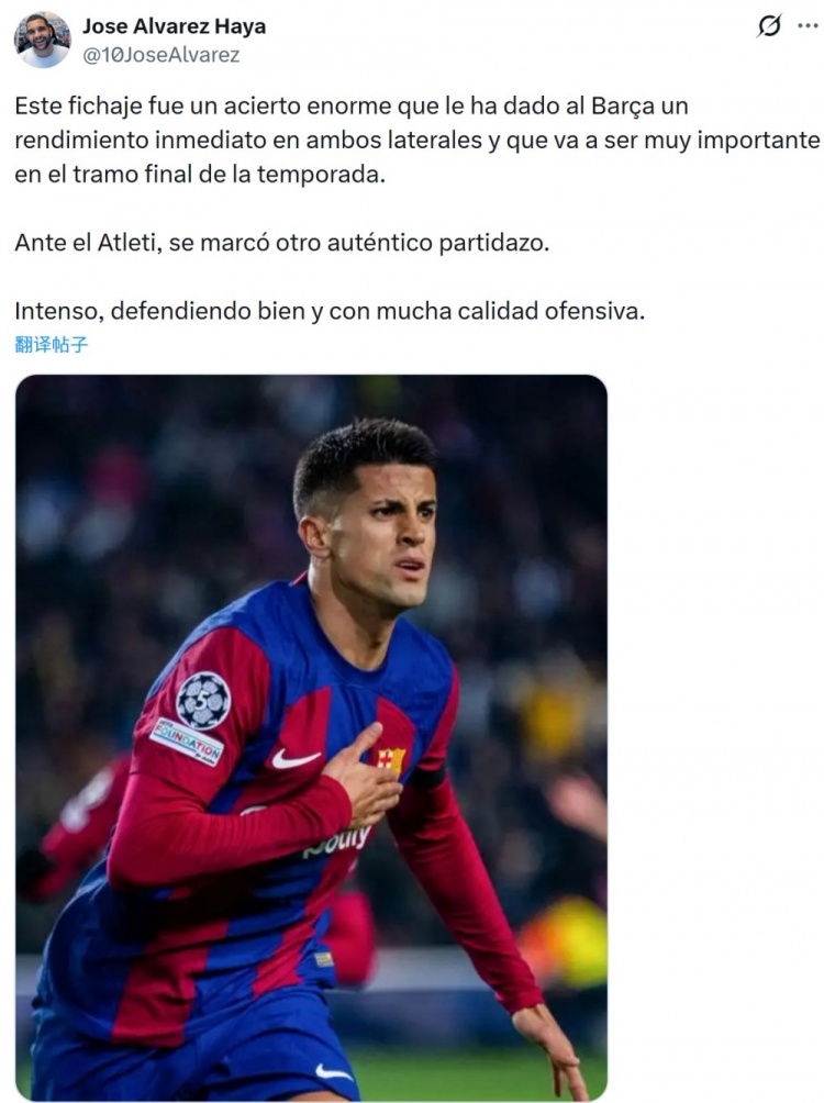 巴薩跟隊記者Jose Alvarez Haya社媒發(fā)文,稱贊了坎塞洛的表現(xiàn):“這筆簽約非常成功,不僅讓巴薩在兩個邊衛(wèi)位置的戰(zhàn)力立即提升,而且將在賽季沖刺階段發(fā)揮重要作用?!?/p>