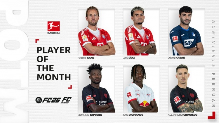 直播吧3月4日訊 德甲官方公布聯(lián)賽2月最佳球員候選,凱恩、路易斯·迪亞斯、揚(yáng)·迪奧曼德等6名球員在列。