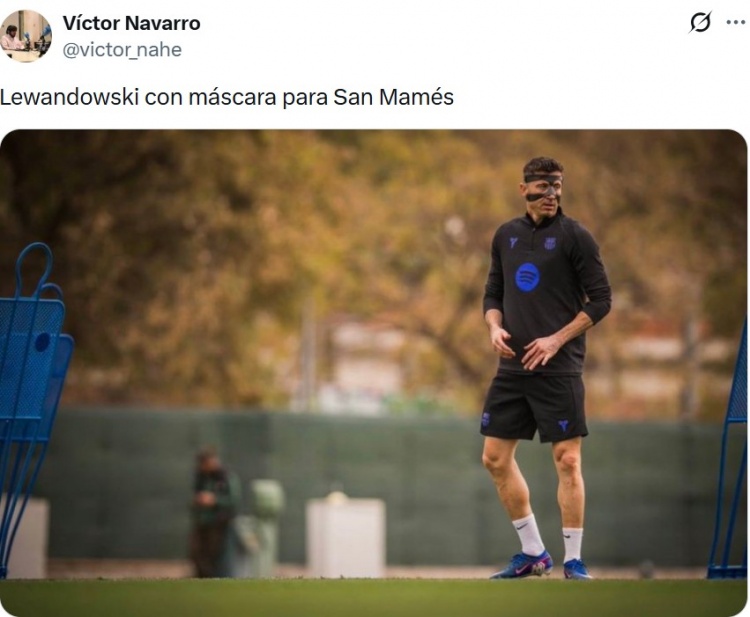 直播吧3月4日訊 記者Víctor Navarro在個(gè)人社媒曬出萊萬(wàn)戴著面具訓(xùn)練的照片,稱(chēng)球員正在為下一輪西甲對(duì)陣畢爾巴鄂競(jìng)技備戰(zhàn)。