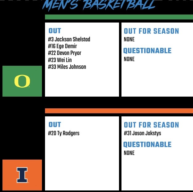 直播吧3月4日訊 今天上午10:00NCAA一場比賽,俄勒岡大學對陣伊利諾伊大學。