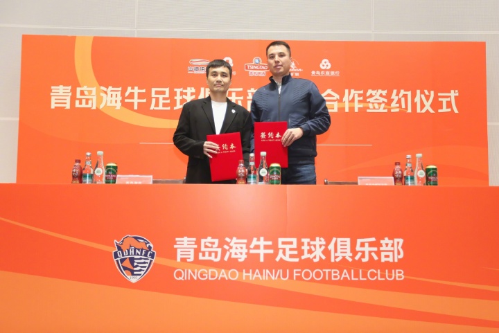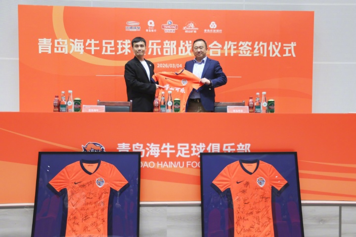 3月4日,青島海牛足球俱樂部2026賽季出征儀式在城陽區(qū)青春足球場圓滿舉行。2026賽季,青島海牛足球俱樂部將攜手青島本土品牌青島啤酒、青島飲料集團、青島銀行、青島農商銀行一同為這座城市的榮譽而戰(zhàn),出征儀式中,俱樂部與該4大品牌進行了簽約儀式,攜手向前?;顒悠陂g,新賽季球衣由部分球員展示,胸前廣告“嶗山可樂”首次亮相。