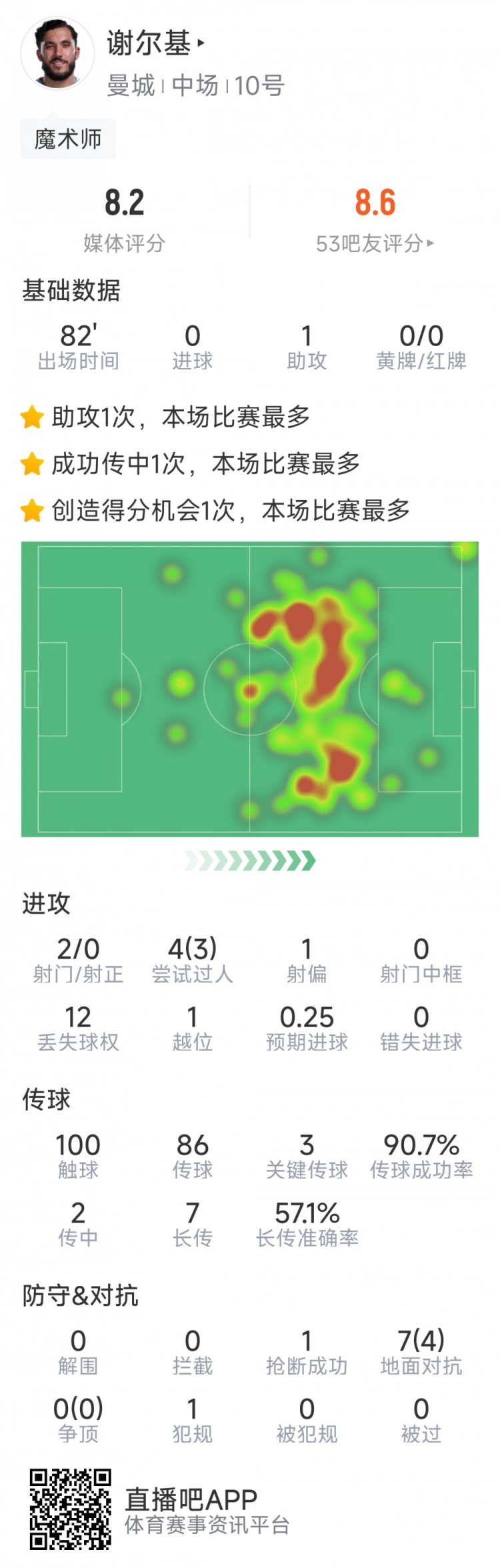 直播吧3月5日訊 在本輪英超曼城2-2戰(zhàn)平諾丁漢森林,以下為謝爾基本場數(shù)據(jù):