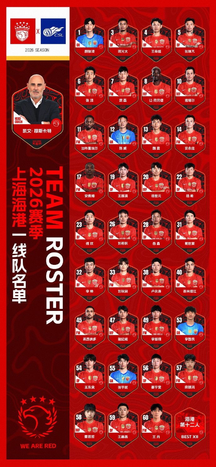 2026賽季上海海港一線隊(duì)名單