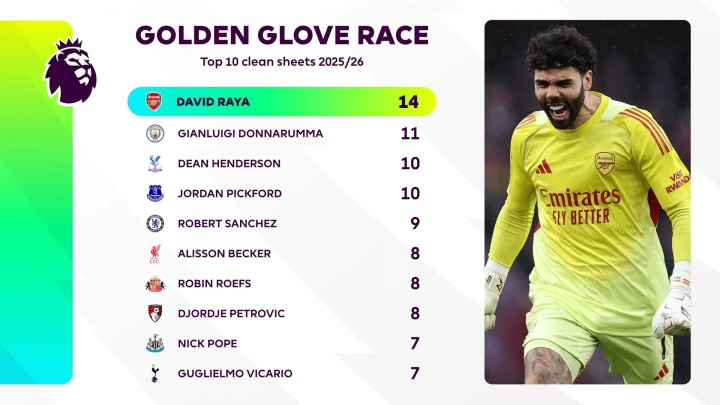 直播吧03月05日訊 本輪英超阿森納客場1-0小勝布萊頓,拉亞再度收獲零封,在金手套獎之爭中繼續(xù)擴大自己的領先優(yōu)勢,他正在力爭連續(xù)第三次獲得英超金手套獎。