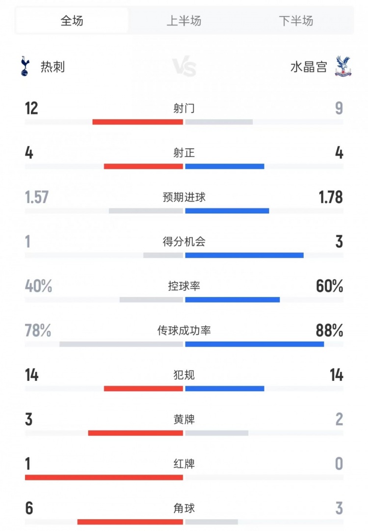 熱刺vs水晶宮全場數(shù)據(jù)