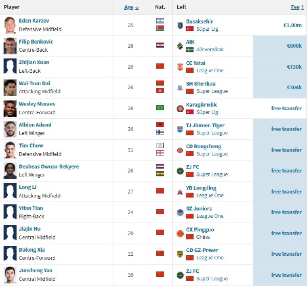 另外青島海牛還更換了上賽季所有的5名外援,不過新援入隊還是較為快速,早在1月時就已經(jīng)敲定3人。