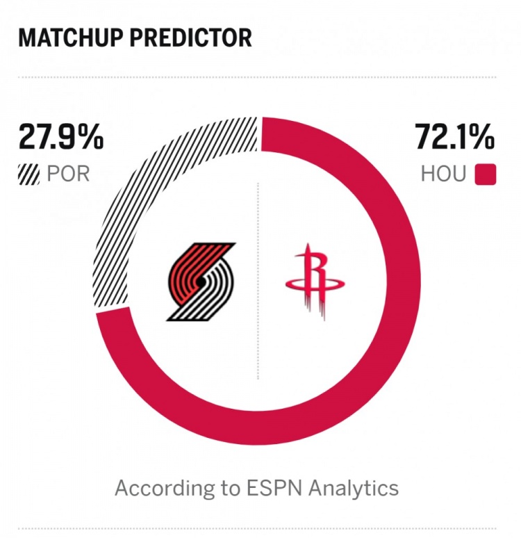 ESPN對本場勝率進行了預測,火箭勝率為72.1%,開拓者則是27.9%。