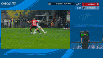 直播吧03月06日訊 2026賽季中超揭幕戰(zhàn),成都蓉城vs深圳新鵬城。比賽第18分鐘,VAR介入,認(rèn)定姜至鵬肘擊韋林頓,主裁王迪改判直紅將姜至鵬罰下。