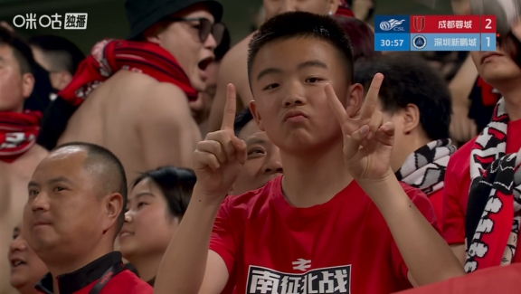 蓉城九分鐘兩球反超比分!鏡頭捕捉到看臺小球迷比2-1手勢