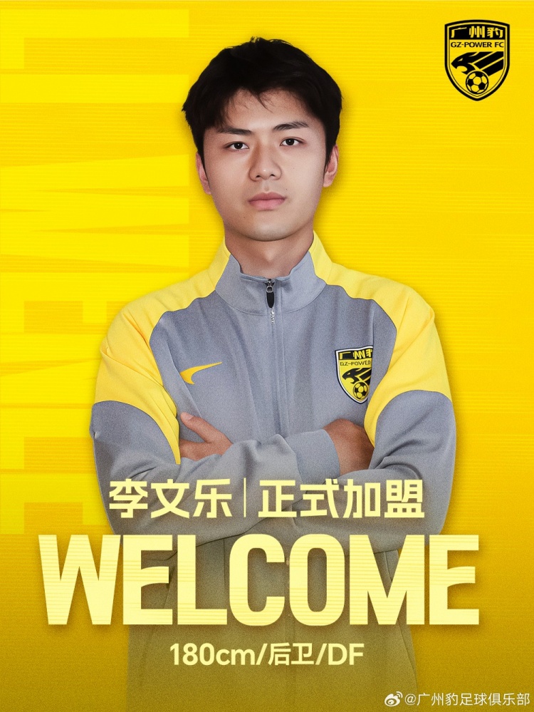 經(jīng)與浙江職業(yè)足球俱樂部及球員本人協(xié)商并達(dá)成一致,潛力后衛(wèi)李文樂正式加盟廣州豹足球俱樂部。