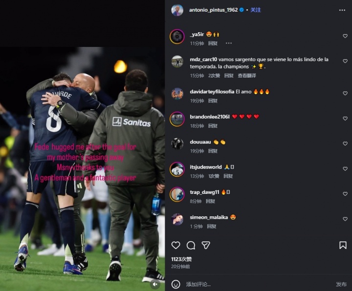 平圖斯賽后更新社媒,他寫到:進(jìn)球后,巴爾韋德?lián)肀Я宋?,為了一起告慰我去世的母親。巴爾韋德你是一名真正的紳士和極其出色的運(yùn)動員。