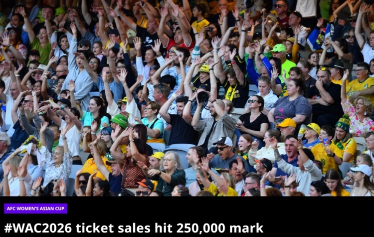 直播吧3月7日訊 據(jù)亞足聯(lián)官網(wǎng)報道,開賽尚不足一周,2026年澳大利亞女足亞洲杯于周六再迎重要里程碑,賽事門票銷量正式突破25萬張大關(guān)。