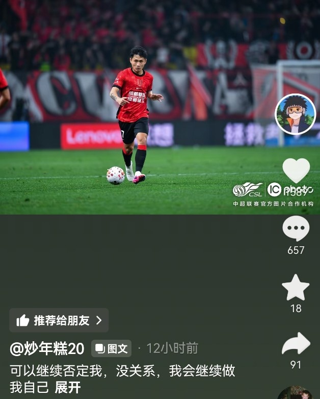 直播吧3月7日訊 中超揭幕戰(zhàn),成都蓉城主場5-1擊敗深圳新鵬城。賽后,為成都蓉城貢獻兩次助攻的王東升更新了個人社交媒體。