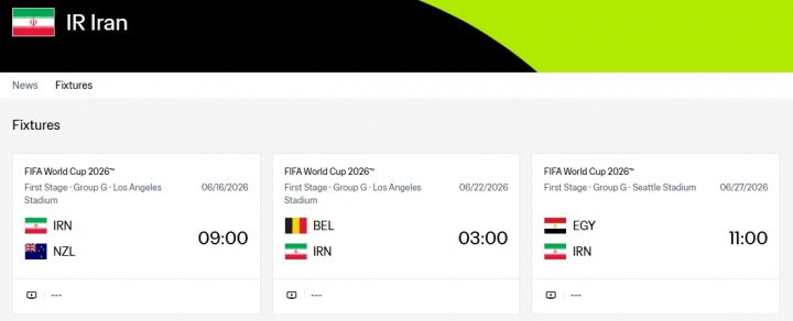 伊朗三場小組賽的賽程: