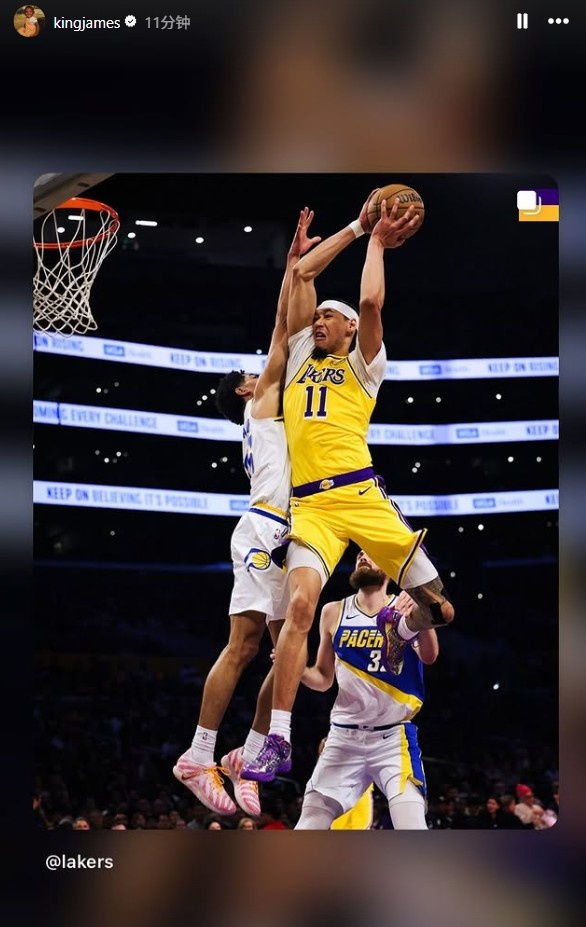 賽后,本場缺陣的詹姆斯更新社媒,轉(zhuǎn)發(fā)了海斯的隔扣和東契奇的神奇打板三分。
