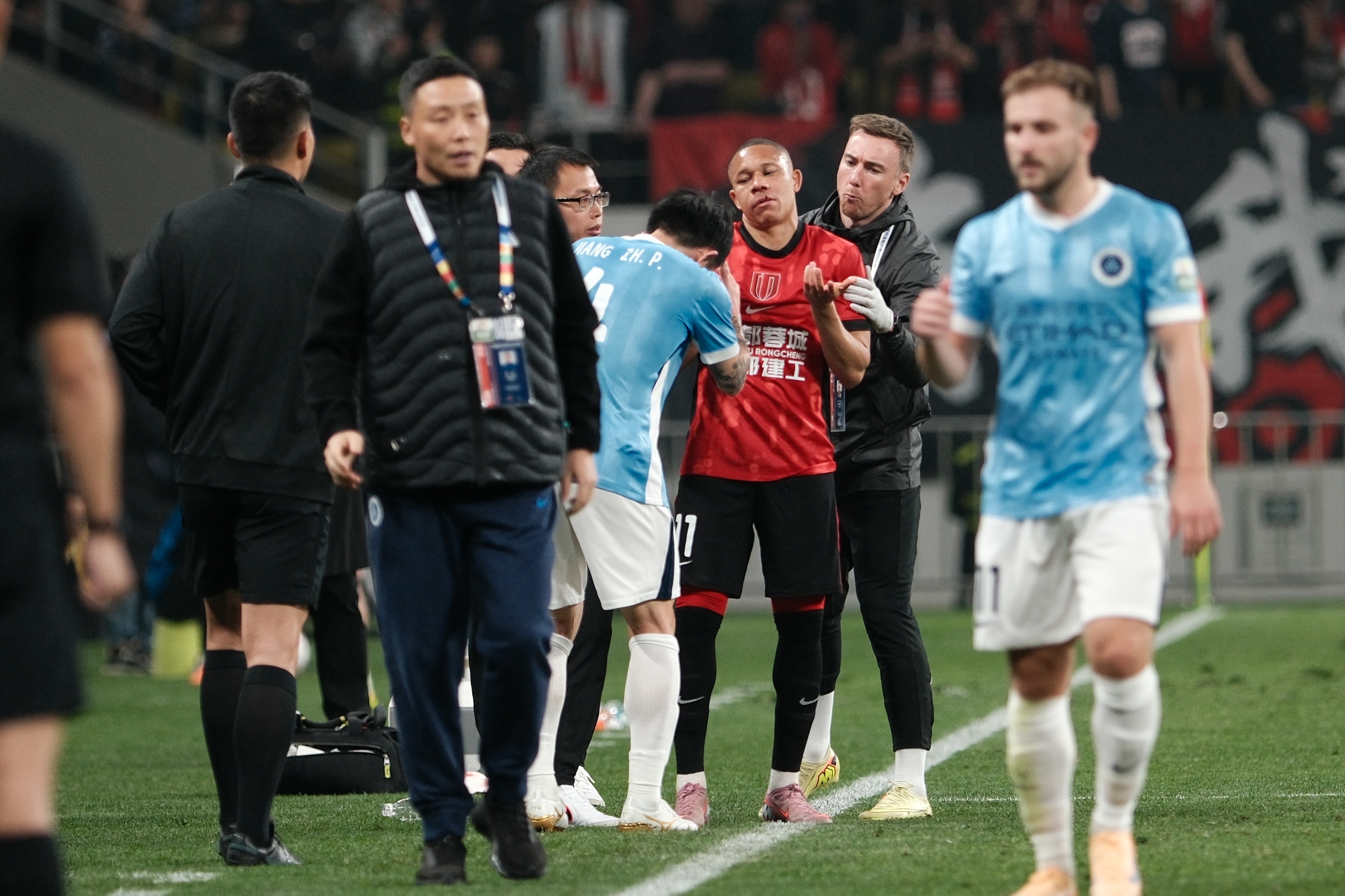 直播吧3月7日訊 新賽季中超揭幕戰(zhàn),成都蓉城主場5-1大勝十人深圳新鵬城,取得開門紅。比賽第18分鐘姜至鵬因為肘擊韋林頓的犯規(guī)被紅牌罰下。