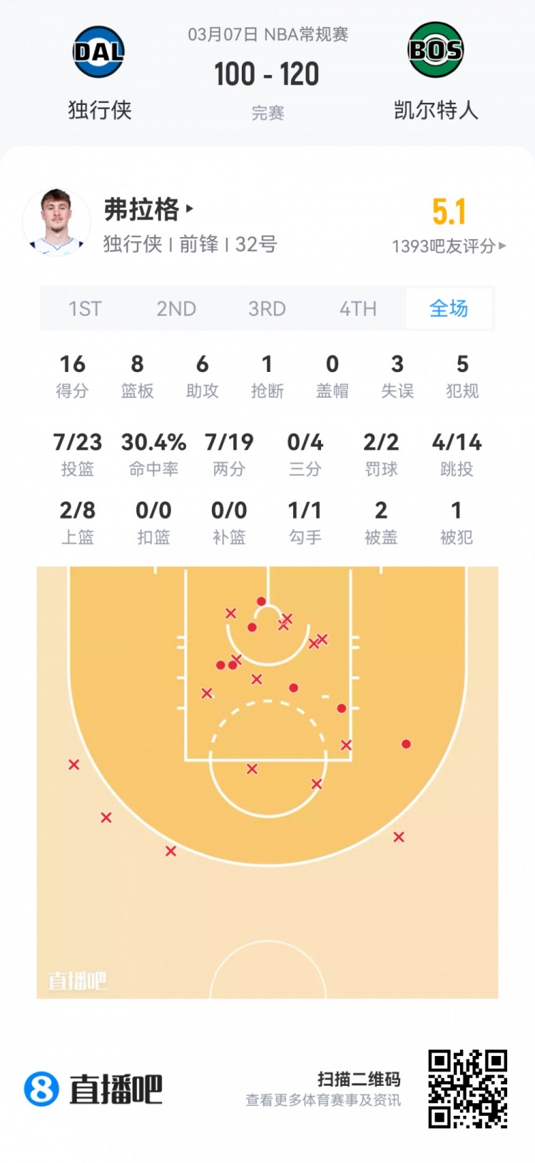 獨行俠狀元秀弗拉格 登場30.1分鐘