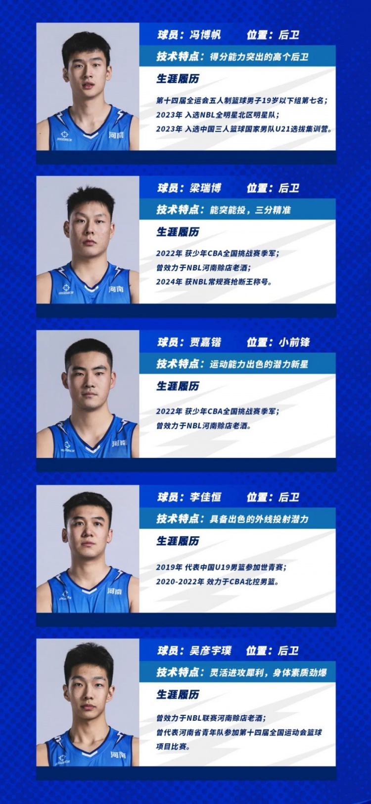 焦作文旅是本賽季六支新軍之一,他們的總經(jīng)理李根是中國(guó)籃球名宿,前國(guó)家隊(duì)隊(duì)員,CBA總冠軍成員;助理教練薛玉洋也是中國(guó)籃球名宿,曾參加NBA選秀并被小牛隊(duì)選中。外籍球員霍爾德得分能力出眾,本賽季曾有過(guò)得分50+的亮眼表現(xiàn),威姆斯是球員兼助理教練,曾是CBA總冠軍成員,馮博帆和梁瑞博都擁有較強(qiáng)的得分能力。