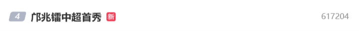 #鄺兆鐳中超首秀 的詞條沖上微博熱搜第四。