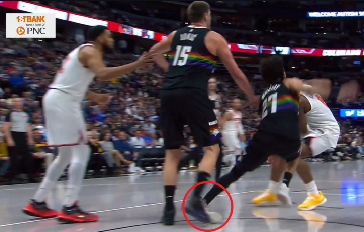 次節(jié)末,掘金后衛(wèi)穆雷防守沉退時左腳不慎踩到隊(duì)友約基奇,左腳踝向外側(cè)翻連續(xù)扭傷。隨后穆雷捂著腳踝痛苦倒地,現(xiàn)已回到更衣室。