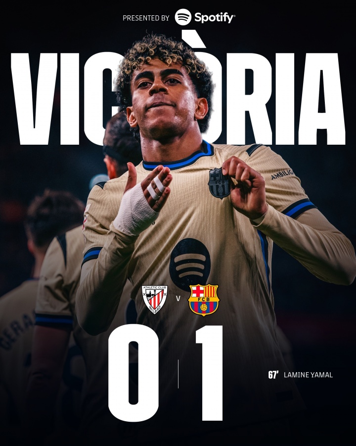 直播吧03月08日訊 西甲第27輪,巴薩客場1-0擊敗畢爾巴鄂競技,亞馬爾貢獻制勝球,招牌兜射破門。