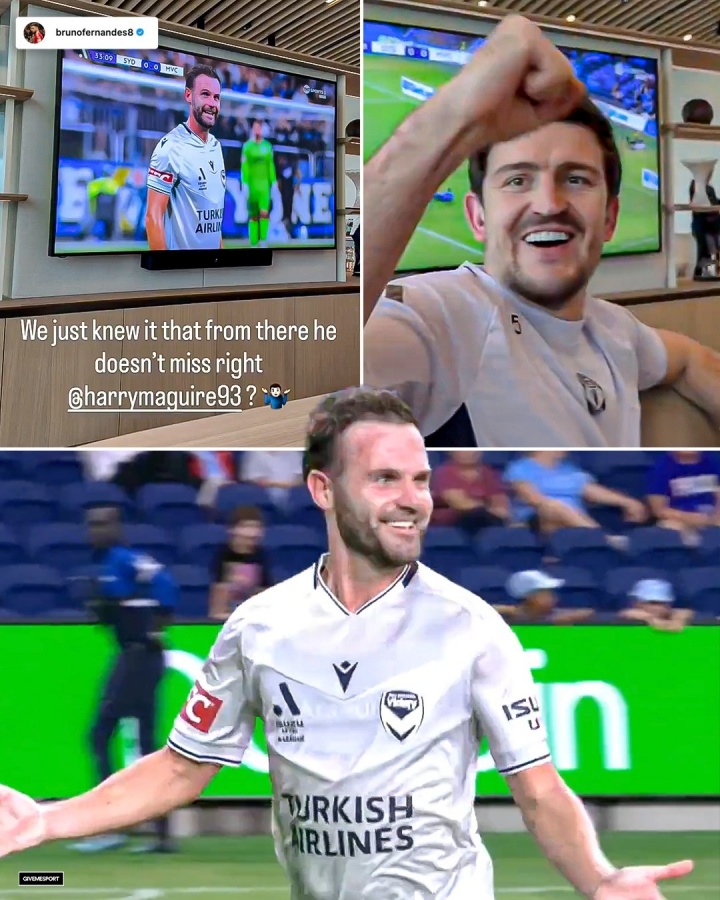 馬塔的前隊(duì)友B費(fèi)和馬奎爾在社媒發(fā)布一起觀看馬塔比賽的照片,并祝賀馬塔的進(jìn)球。