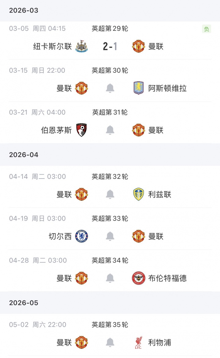 曼聯(lián)后續(xù)賽程↓
