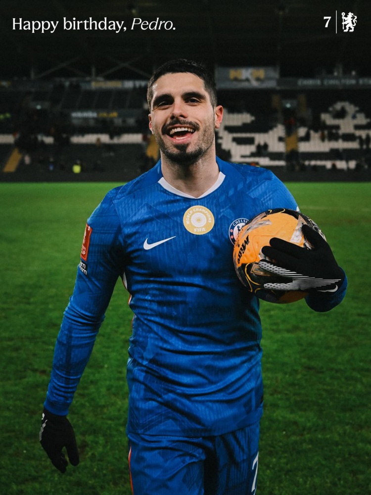 切爾西官方社媒曬出佩德羅·內托的生日海報,配文:“祝我們的7號球員佩德羅·內托生日快樂!”