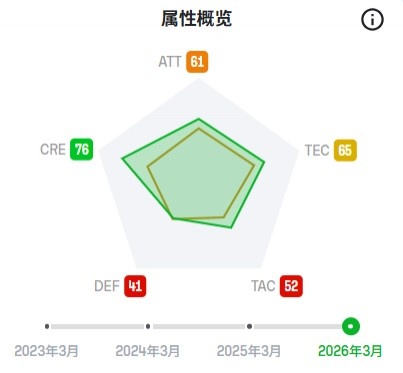 (本賽季的巴雷拉數(shù)值下降比較大,綠色:之前,黃色:現(xiàn)在)